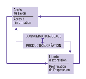 Le « savoir » dans son sens le plus instrumental renvoie généralement aux éléments de l’apprentissage, ouvrages savants et œuvres artistiques, et leurs outils. Le mouvement pour l’accès au savoir[3], par exemple, demande une réforme de la loi sur le droit d’auteur et la promulgation de l’accès ouvert. L’accès au savoir tel qu’il existe actuellement est un cadre de référence relativement nouveau si l’on compare avec le droit à l’information, qui est exigé depuis plus longtemps. Mais il ne faut pas oublier que cette idée a toujours existé et a même été exprimée, qu’il s’agisse des espoirs ou des craintes que suscite chaque avancée technologique dérangeante, de l’imprimerie à l’internet.
